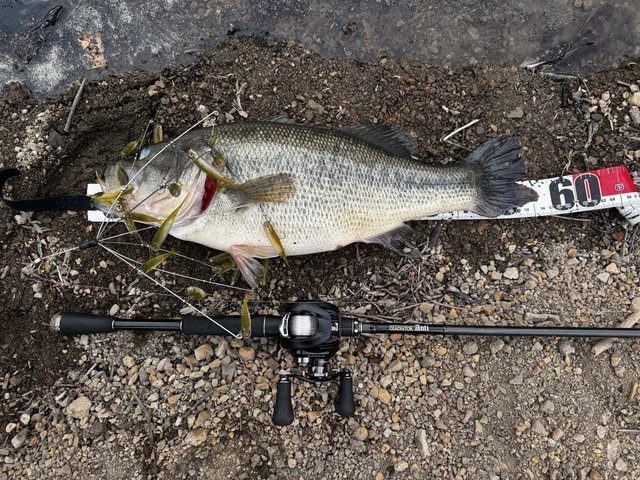 難攻不落の奥多摩湖で56.5㎝、痺れる1匹をマッスルワイヤーのバマストでガツンとバイト。
