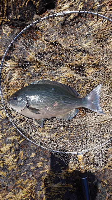 沖磯の洗礼といいますか、2回ラインブレイクのすえやっと揚げた1枚です。ゲストも多彩でしかもマッチョ、楽しい神子元釣行となりました!