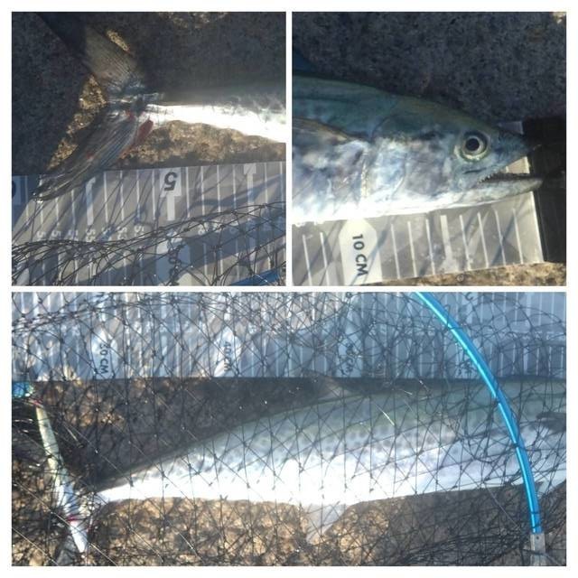 慌ててキャストしたらエソ…しかしエソをリリースし次投フォールで物凄い引き!スレ掛かりのサゴシ捕獲成功した♪