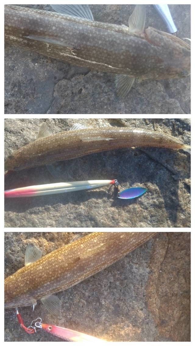 ファーストフィッシュは初釣り以来のエソ…(ToT)暫くして、新品のモンスターショットをロストしリーダーを組み直そうと思っていたらボイルが目に入る。