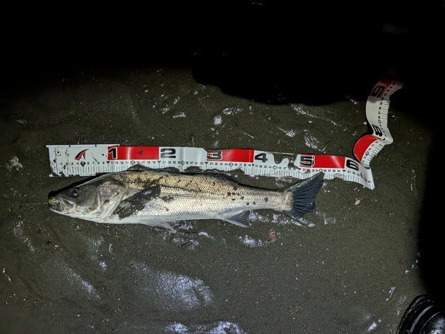 今年初シーバス。小さくても嬉しい。