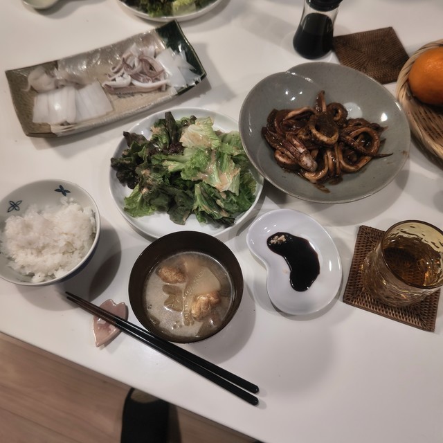 イカ尽くし!釣り人の特権ですね!!ワタの事をゴロというのですね!